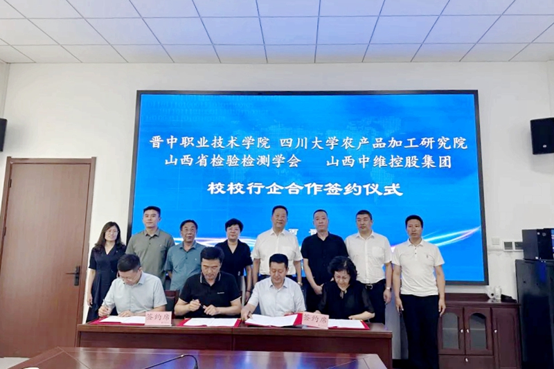 2023年8月18日,晉中職業(yè)技術(shù)學(xué)院、四川大學(xué)農(nóng)產(chǎn)品加工研究院、山西省檢驗(yàn)檢測(cè)學(xué)會(huì)、中維控股集團(tuán)“校校行企”合作洽談會(huì)議暨共建“食品產(chǎn)業(yè)學(xué)院”合作簽約儀式在晉中職業(yè)技術(shù)學(xué)院行政樓舉行。晉中職業(yè)技術(shù)學(xué)院院長(zhǎng)雒衛(wèi)廷、四川大學(xué)農(nóng)產(chǎn)品加工研究院常務(wù)副院長(zhǎng)趙志峰、山西省檢驗(yàn)檢測(cè)學(xué)會(huì)副會(huì)長(zhǎng)張紅、中維控股集團(tuán)董事長(zhǎng)郭秀忠等領(lǐng)導(dǎo)出席,與會(huì)的還有各單位相關(guān)負(fù)責(zé)同志。